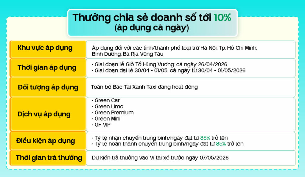 Bác Tài Xanh thân mến,🎉 Các dịp lễ lớn đã cận kề! Từ lễ Giỗ Tổ Hùng Vương tới Đại lễ 30/04 – 01/05, tất cả đang tới rất gần và nhu cầu Khách hàng sẽ tăng cao trong giai đoạn cao điểm này! Đây chính thời điểm vàng để Bác Tài Xanh mở app, […]